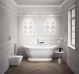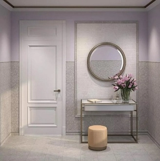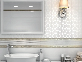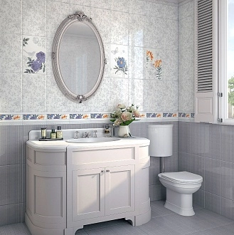 Для ванной и санузла — влагостойкие настенные коллекции с глянцевой или матовой поверхностью, часто дополненные декорами и мозаикой