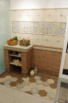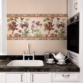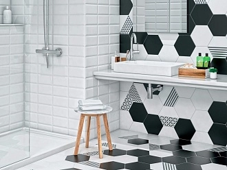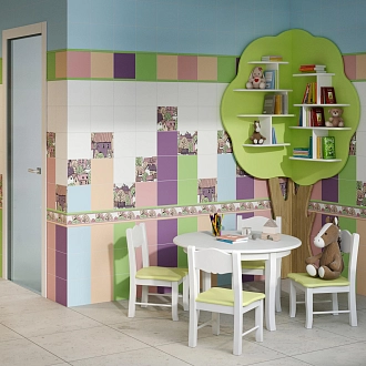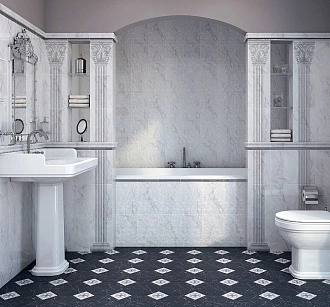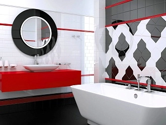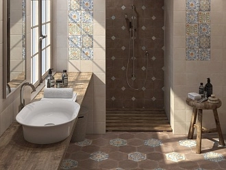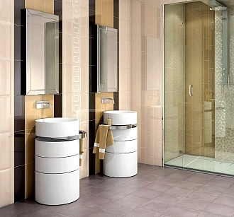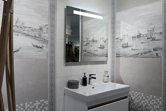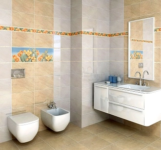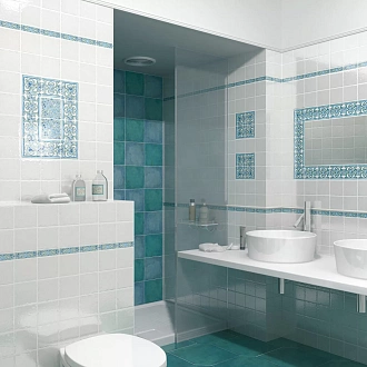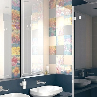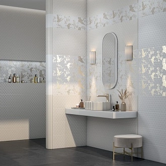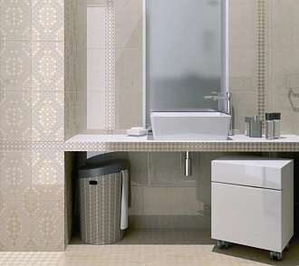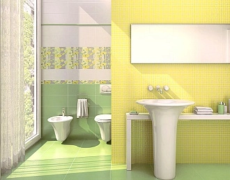 Для ванной и санузла — влагостойкие настенные коллекции с глянцевой или матовой поверхностью, часто дополненные декорами и мозаикой