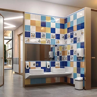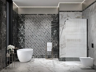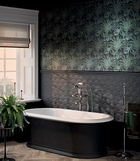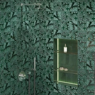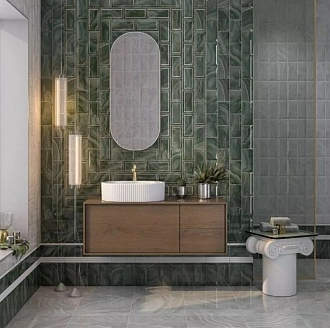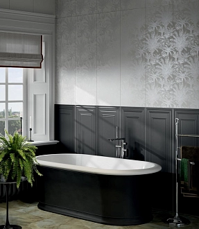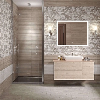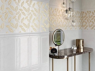 Для ванной и санузла — влагостойкие настенные коллекции с глянцевой или матовой поверхностью, часто дополненные декорами и мозаикой