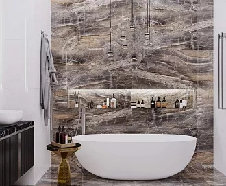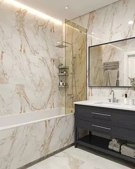 - Широкий выбор форматов. Есть и классические размеры 20×50 см, 25×75 см для стен, и крупноформатный керамогранит для пола — можно реализовать разные дизайнерские задумки.