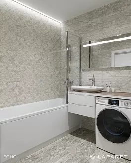 Плитка Laparet подходит для ванных комнат, кухонь, прихожих и других жилых помещений. В ассортименте есть и настенная плитка, и напольная, и керамогранит — можно подобрать всё для одного проекта в едином стиле. Дизайн коллекций простой и актуальный: имитации мрамора, бетона, дерева, однотонные варианты и геометрические узоры. Ничего лишнего — только то, что реально используется в современных интерьерах.