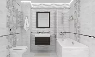 - Наличие декоров. Помимо базовых элементов, в коллекциях есть декоративные вставки, бордюры и панно — можно добавить акценты без лишних затрат.