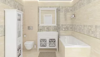 - Назначение помещения. Для ванной комнаты подойдет настенная плитка с глянцевой или матовой поверхностью, для пола лучше выбрать керамогранит с противоскользящим покрытием.
