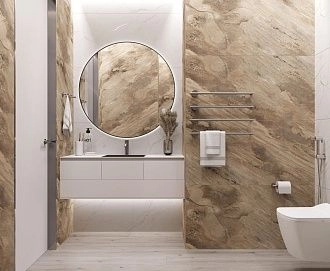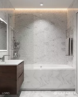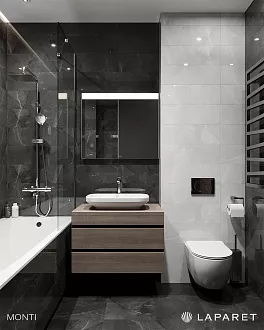 Плитка Laparet подходит для ванных комнат, кухонь, прихожих и других жилых помещений. В ассортименте есть и настенная плитка, и напольная, и керамогранит — можно подобрать всё для одного проекта в едином стиле. Дизайн коллекций простой и актуальный: имитации мрамора, бетона, дерева, однотонные варианты и геометрические узоры. Ничего лишнего — только то, что реально используется в современных интерьерах.
