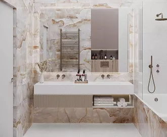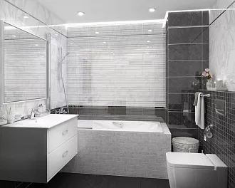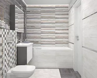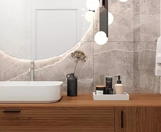 - Широкий выбор форматов. Есть и классические размеры 20×50 см, 25×75 см для стен, и крупноформатный керамогранит для пола — можно реализовать разные дизайнерские задумки.